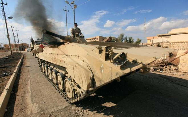 Xe tăng của quân đội chính phủ Iraq tiến về Mosul. Ảnh: Reuters.