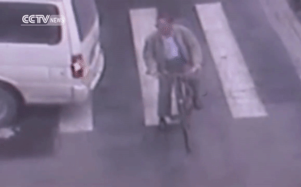 Vụ tai nạn không đáng có xảy ra trên một tuyến đường ở quận Thanh Phố, Thượng Hải, Trung Quốc. Theo camera an ninh ghi lại, một ông lão đang đạp xe đi tới và dừng lại vì gặp đèn đỏ.