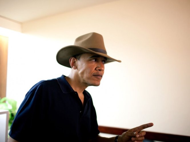 Ông Obama đội một chiếc mũ được tặng trong chuyến viếng thăm Ai Cập vào năm 2009 - Ảnh: Pete Souza