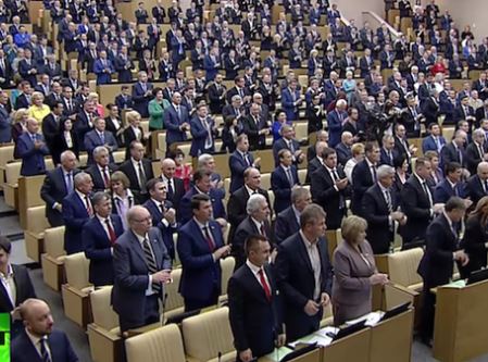 Các nghị sĩ Duma Nga vỗ tay chúc mừng Donald Trump (Nguồn: RT).