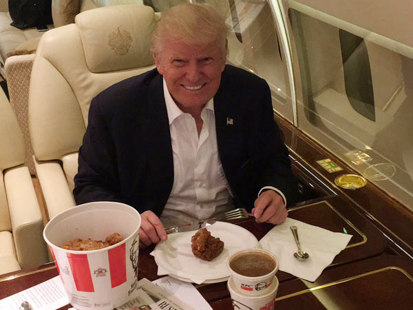 Trong chiến dịch tranh cử tổng thống, ông Donald Trump thể hiện là một người nghiện đồ ăn nhanh, người ta cho rằng đây là một chiêu thức để tạo ra một hình ảnh bình dân và gần gũi. Tuy nhiên, nhiều ý kiến cho rằng ngay từ trước khi chạy đua vào Nhà Trắng, tỷ phú này đã không ngần ngại ăn những món ăn nhanh, bán đại trà.