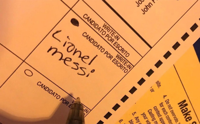 Một tài khoản Twitter mới đây đã gây chú ý trên mạng cho chia sẻ bức ảnh chụp tấm phiếu bầu cử tổng thống Mỹ, trong đó tên của Messi được viết ở ô "ứng viên tổng thống".