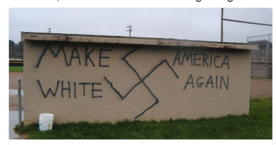 Tại làng Wellsville ở bang New York, biểu tượng chữ thập ngoặc (của phát xít) được vẽ lên tường với dòng chữ “Làm cho nước Mỹ trắng trở lại”. Câu nói này gần với khẩu hiệu tranh cử của Donald Trump: “Làm cho nước Mỹ vĩ đại trở lại”.