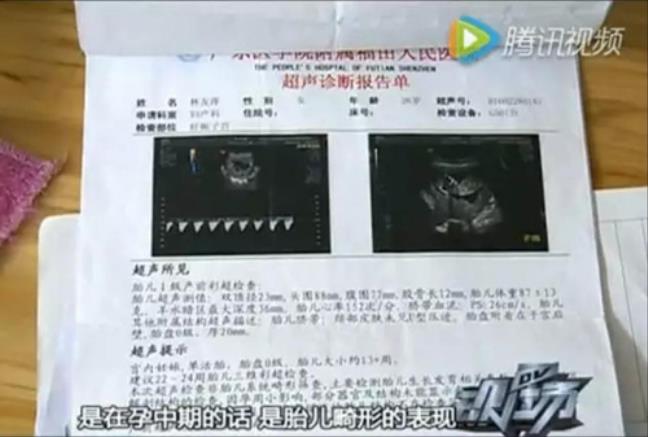 Theo tin tức từ trang tin QQ (Trung Quốc), người phụ nữ 26 tuổi mang họ Lâm, sinh sống tại Thẩm Quyến, sau khi mang bầu đứa con đầu lòng gần 10 tháng đã hạ sinh một bé gái bị dị tật bẩm sinh nghiêm trọng khiến cô vô cùng sốc và ngay sau đó đã rơi vào tình trạng trầm cảm nặng nề. Đây là một trong những trường hợp "siêu âm thai bình thường, mẹ sinh con dị tật" khiến các bậc cha mẹ vô cùng đau lòng.
