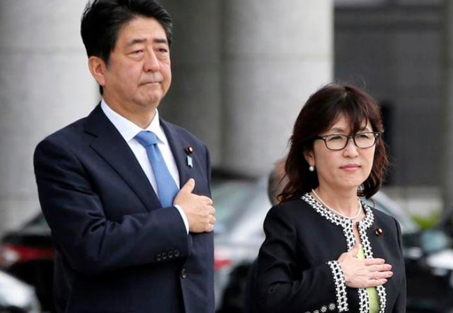Thủ tướng Nhật Bản Shinzo Abe và Bộ trưởng Quốc phòng Nhật Bản Tomomi Inada. Ảnh: QQ