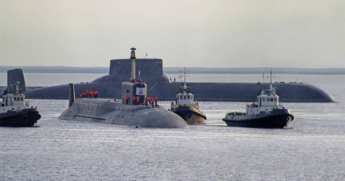 Tàu ngầm lớp Akula (phía sau) và Borei.