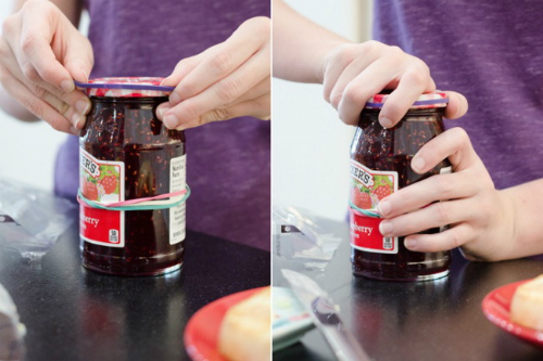 Mở nắp lọ bằng vòng cao su