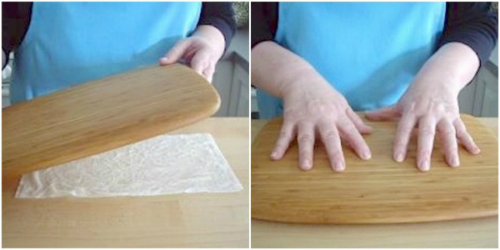 Lót một chiếc khăn bằng giấy hoặc vải cotton ẩm dưới đáy thớt, bạn có thể yên tâm hoàn toàn trong lúc chặt, hay thái thực phẩm, vì mẹo này giúp thớt không bị trơn trượt.