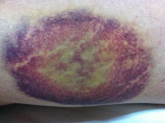 Những người thực hiện các bài tập mạnh, nhanh, nâng trọng lượng, có thể vô tình làm tổn thương mình mà không hề hay biết. Tập thể dục cũng gây nhiều áp lực cho các cơ bắp dẫn đến "bùng nổ" mạch máu nhỏ gây ra vết bầm.