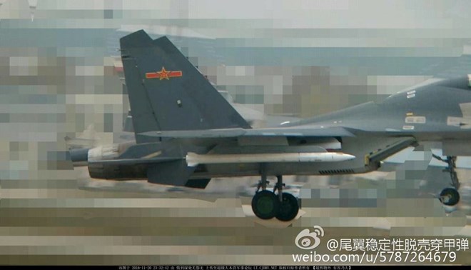 Một máy bay J-16 của Trung Quốc đă bắn thử nghiệm một loại tên lửa không đối không siêu thanh mới. Ảnh: Infonet