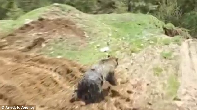 Công nhân xây dựng gần một trang trại gà ở thành phố Bolu, Thổ Nhĩ Kỳ đã được một phen hết hồn sau khi đào một chiếc hố dưới đất. Thay vì rắn rết hay những loài sinh vật thông thường chui lên, một con gấu nâu to lừng lững bò ra khỏi miệng hố.