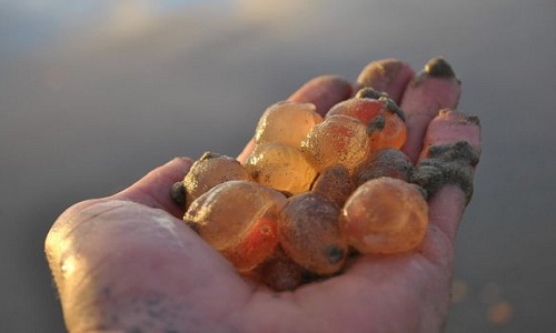 Những sinh vật lạ mắc cạn trên bờ biển Huntington phía nam bang California, Mỹ, UPI hôm qua đưa tin. Một cư dân địa phương tên Don Coursey cho biết chưa từng trông thấy vật nào tương tự trong 30 năm sinh sống gần bãi biển. "Chúng có vẻ giống thạch dẻo. Nếu bạn là trẻ nhỏ, bạn sẽ thích thứ này tới mức bỏ ngay vào túi áo", Coursey nói.