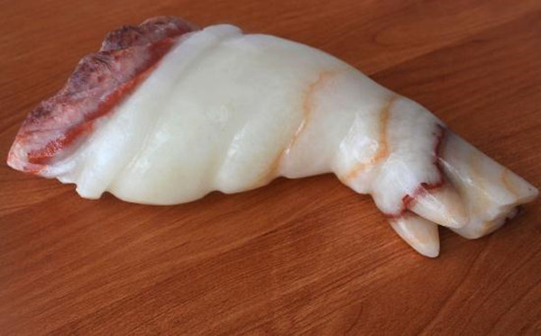 Sau khi rửa xong, trông nó càng giống như một cái chân giò lợn vừa lấy trong ngăn đá tủ lạnh ra. Hình ảnh thật sống động, kỳ quái!