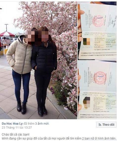 Trước đó, ngày 23/11, trên mạng xã hội Facebook có đăng tải thông tin kèm hình ảnh của hai bạn nữ sinh đột ngột mất liên lạc. Status này ghi rõ: “Mình đang cần sự giúp đỡ của tất cả mọi người để tìm kiếm 2 bạn nữ ở hình ảnh trên, 2 bạn đã mất tích cả 3 tháng nay, bên mình đã nhờ sự giúp đỡ của mọi người tìm kiếm nhưng không có kết quả và khi đến gia đình cũng báo không liên lạc được, hai bạn hiện tại đang ở Hàn Quốc”.