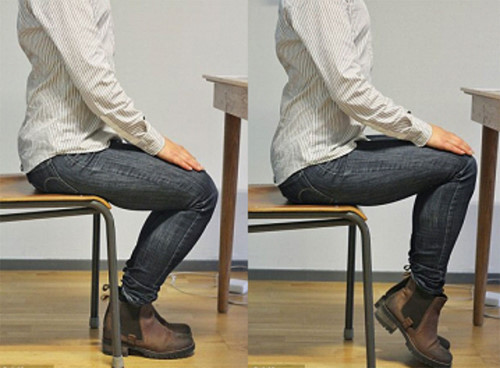 Đây là động tác giúp giảm chứng tê mỏi chân do ngồi lâu một chỗ. Ngồi trên ghế, 2 chân duỗi thẳng với chân trái để vắt qua chân phải. Từ từ nâng 2 chân lên khỏi sàn và giữ nguyên tư thế cho đến khi bạn cảm thấy mỏi chân. Sau đó, lặp lại động tác này nhưng để chân phải vắt qua chân trái.