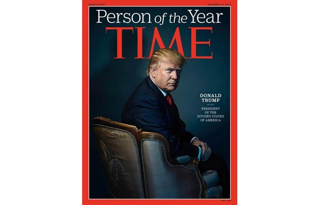 Bìa tạp chí Time vinh danh Tổng thống đắc cử Mỹ Donald Trump là Nhân vật của năm 2016.