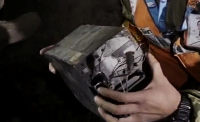 Một thành viên của nhóm cứu hộ đang cầm chiếc hộp đen của máy bay bị nạn tại Pakistan - Ảnh: Reuters
