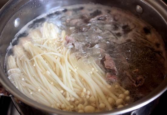 Bước 3: Cho bò đã ướp và nấm vào đun sôi khoảng 3 phút nữa thì nêm lại gia vị cho vừa ăn rồi tắt bếp.