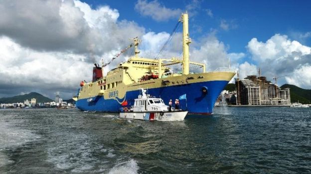 Nhanh nhất là Trung Quốc, quốc gia tuyên bố chủ quyền đối với hầu hết Biển Đông. Như thường lệ, Trung Quốc khẳng định chủ quyền "không thể chối cãi" với các quần đảo Hoàng Sa và Trường Sa, đồng thời yêu cầu Việt Nam "dừng ngay việc xâm chiếm và xây dựng trái phép, không có các hành động có thể làm phức tạp thêm tình hình".