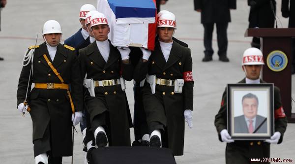 Quan tài Đại sứ Nga trên đường ra máy bay rời Thổ Nhĩ Kỳ. (ảnh Reuters)