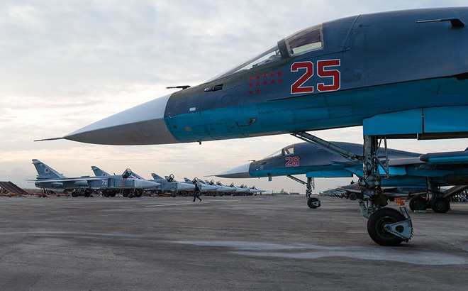 Những ngôi sao chiến công in trên máy bay tiêm kích Su-34 của Không quân Nga triển khai ở Syria.