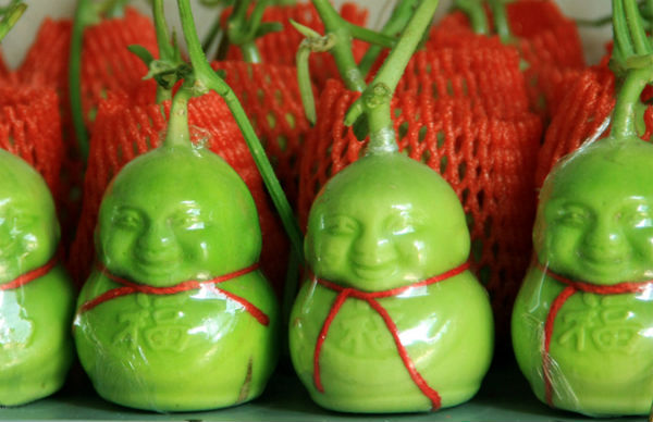 Dưa lê thần tài có màu sắc bóng bẩy, hình dáng độc lạ, bắt mắt.