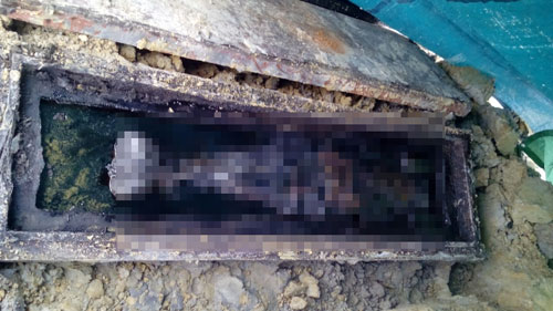 “Khi mở ra bên trong có chứa nước nhưng không phải là nước ao, vì nó màu đen vàng có nổi váng kèm mùi thơm nhẹ. Đặc biệt, phần thi thể da thịt gần như vẫn còn nguyên vẹn” - ông Tĩnh nhớ lại.