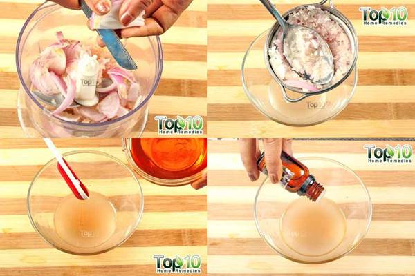 Thêm 1-2 muỗng cafe mật ong vào nước ép hành tây. Có thể cho thêm vài giọt tinh dầu oải hương hoặc bất kỳ mùi gì tùy chọn.