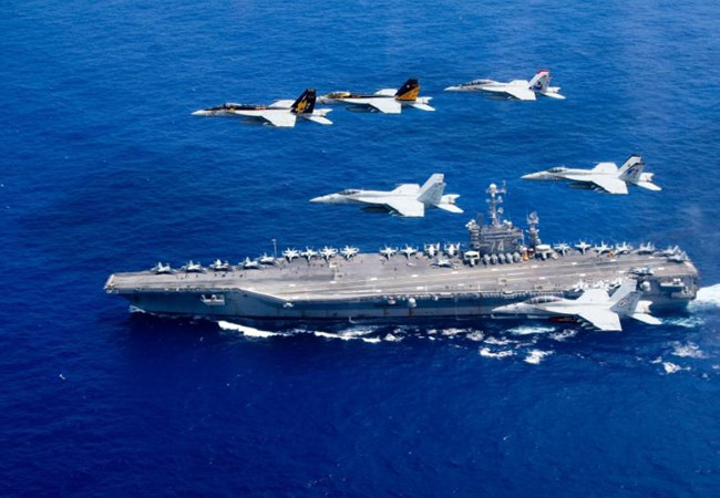 Hạm đội 2 tàu sân bay Mỹ phô diễn sức mạnh trên Biển Đông. Ảnh: Sina