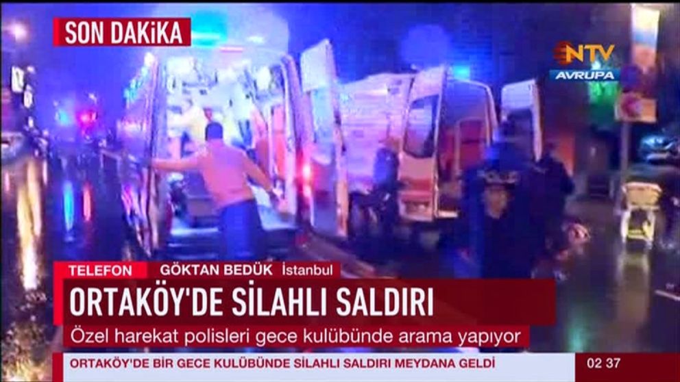 Những báo cáo ban đầu cho hay, các nhân chức nói rằng có một người vũ trang đã bất ngờ xả súng vào một hộp đêm tại quận Ortaköy, thành phố Istanbul, Thổ Nhĩ Kỳ khi mọi người đang tập trung chào đón đêm Giao thừa.