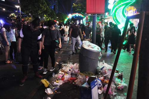 Tối 31.12.2016 hàng ngàn người đổ về khu vực phố đi bộ Nguyễn Huệ để tham gia chương trình đếm ngược giữa thời khắc chuyển giao năm cũ 2016 sang năm mới 2017. Nhiều người mang theo đồ ăn, nước uống sau khi sử dụng xong “tiện tay” vứt ngay trên phố đi bộ. Khi màn chào đón năm mới 2017 kết thúc, mọi người ra về, khu vực phố đi bộ rác thải nằm khắp nơi.