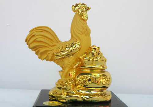 Biểu tượng gà được quan niệm có tác dụng thu hút tài lộc và giữ được thế vững vàng trong công việc, cuộc sống. Tết Đinh Dậu 2017, linh vật đại diện cho cả năm là con gà vì vậy nhiều người đã mua những tượng hình gà từ chỗ làm bằng những vật liệu bình thường cho đến tượng được mạ vàng 24k. Mức giá dao động từ 300.000 đồng cho đến 5-6 triệu đồng.
