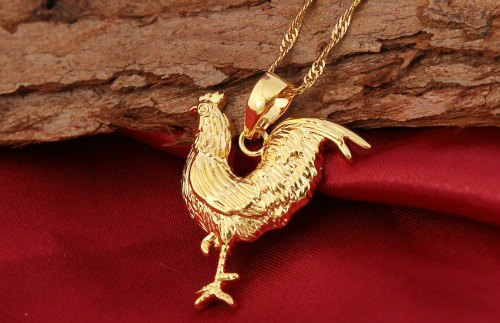 Bên cạnh những món đồ trang trí hoặc phong thủy đắt tiền, trang sức có biểu tượng gà cũng được nhiều người chú ý. Những chiếc vòng tay, vòng cổ, nhỏ nhắn gắn hình gà, chế tác từ vàng 24k, giá vài trăm đến vài triệu đồng được nhiều hãng trang sức chọn làm sản phẩm lạ mắt, tung ra vào dịp Đinh Dậu năm nay.