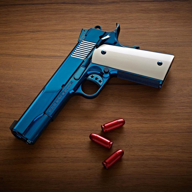 Công ty Cabot Guns vốn nổi tiếng với bộ sưu tập những mẫu súng chế tác từ khẩu súng ngắn huyền thoại M1911 bằng nhiều loại vật liệu đặc biệt như hợp kim thiên thạch, thép Damascus, xương voi ma mút... và sản phẩm mới nhất lần này phục vụ cho mục đích chính trị - chào mừng tân Tổng thống đắc cử Donald Trump.
