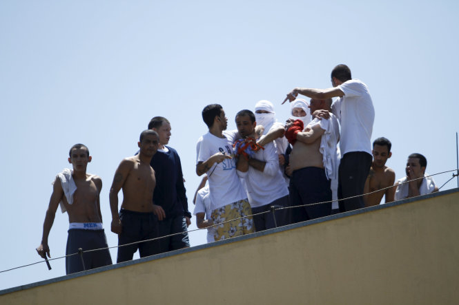 Một nhóm các phạm nhân trong một nhà tù Brazil bắt giữ con tin trong cuộc bạo loạn năm 2015 - Ảnh: Reuters