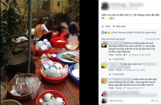 Mới đây, trên diễn đàn hội chị em có truyền tay nhau hình ảnh một cô dâu mới về nhà chồng đang hì hục rửa một đống bát đũa vây quanh mà thấy đồng cảm và xót thay cho phận làm dâu.