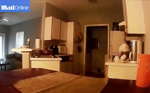 Người đàn ông sống tại thành phố Fayetteville, hạt Bắc Carolina, Mỹ cho biết, sau khi trở về nhà, anh phát hiện một vài đồ vật trong phòng bếp nằm sai vị trí. Chợt nhớ tới những lần đồ vật rơi giữa đêm, Rusty đã đặt camera kín để quan sát.