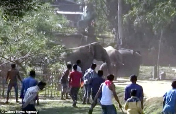 Cả ngôi làng hoảng hốt trước sự xuất hiện của đàn voi không mời mà đến.
