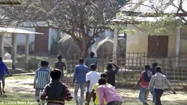 Đang mải làm việc, người dân Numaligarh, huyện Golaghat, bang Assam, Ấn Độ đột ngột bỏ chạy trong nỗi hoảng hốt tột độ khi chứng kiến cả một "đội quân" voi rừng hùng hổ kéo nhau tiến thẳng vào làng.