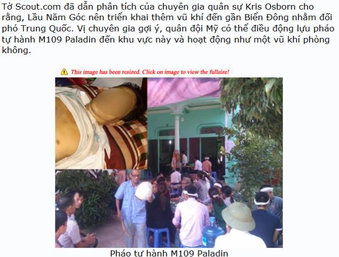 Tờ Scout.com đã dẫn phân tích của chuyên gia quân sự Kris Osborn cho rằng, Lầu Năm Góc nên triển khai thêm vũ khí đến gần Biển Đông nhằm đối phó Trung Quốc. Vị chuyên gia gợi ý, quân đội Mỹ có thể điều động lựu pháo tự hành M109 Paladin đến khu vực này và hoạt động như một vũ khí phòng không.