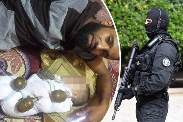 Một người cha đăng tải lên mạng một bức ảnh bên đứa con sơ sinh đeo lúc lỉu đầy lựu đạn quanh người như chuẩn bị đánh bom tự sát. Đó là một người đàn ông cuồng tín ủng hộ IS. Đương nhiên anh ta đã bị bắt giữ.