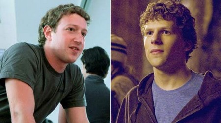 Diễn viên Jesse Eisenberg (phải), người đóng vai dựa trên hình tượng Mark Zuckerberg trong bộ phim “The Social Network”