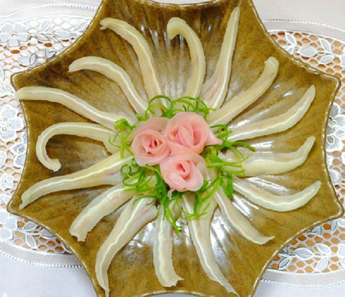 - Tai lợn sau khi luộc chín xong thả ngay vào bát nước lạnh để tai giữ được độ săn của bề mặt. Tai nguội thì vớt ra để ráo.
