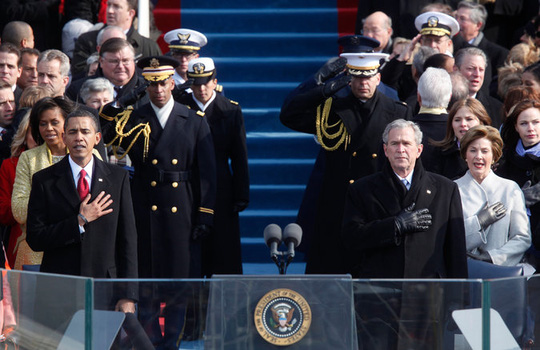 Tổng thống Barack Obama và cựu Tổng thống George W. Bush trong lễ nhậm chức năm 2009. Ảnh: NY Times