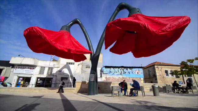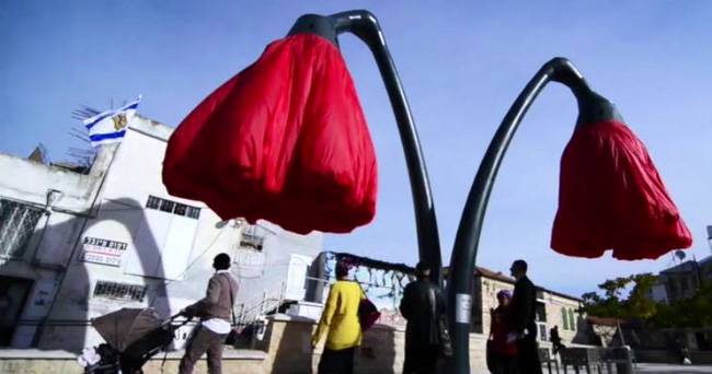 Nếu được đặt chân đến thủ đô Jerusalem, Israel, bạn sẽ bị choáng ngợp bởi những bông hoa khổng lồ màu đỏ "mọc lên" giữa thành phố. Đặc biệt, bạn chỉ cần đứng dưới, nụ hoa sẽ tự động nở bung ra và che mưa che nắng cho bạn. Bên cạnh đó, loài hoa kỳ lạ này còn có khả năng phát sáng vào ban đêm.