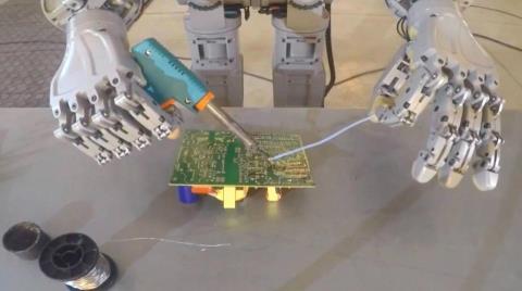 Một con robot khác đang sửa chữa vi mạch điện tử phúc tạp.