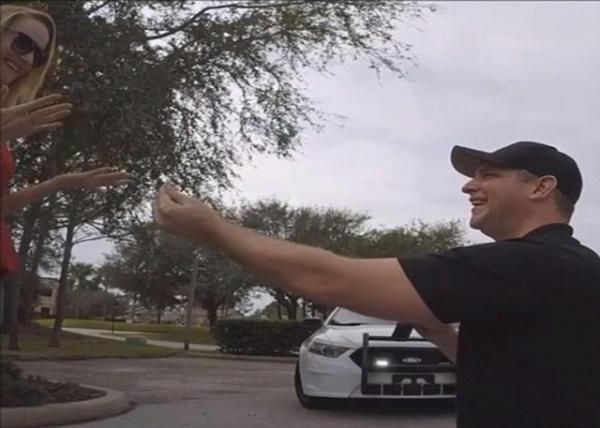 Ở Florida, Mỹ mới đây đã có màn cầu hôn vô cùng ấn tượng. Chàng trai đã nhờ cả cảnh sát "diễn" cùng để tỏ tình thành công với cô gái mình yêu. Cô bạn gái đã rất bất ngờ và bị lừa ngoạn mục bởi anh người yêu lắm chiêu này.