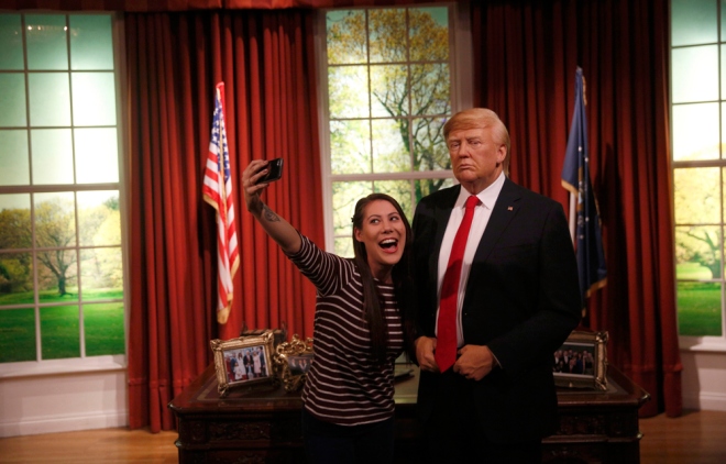 Tại bảo tàng tượng sáp nổi tiếng Madame Tussauds ở London, Anh, du khách hào hứng chụp ảnh với tượng của tổng thống đắc cử Mỹ.