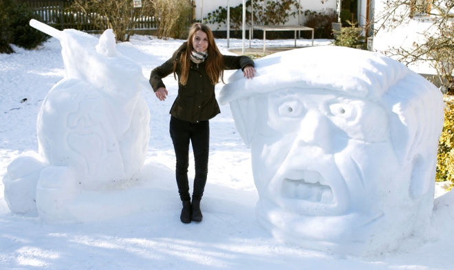 Nữ điêu khắc Magdalena Kammermeier cũng tạc tượng ông Trump bằng tuyết trong một khu vườn ở Wenzenbach, Đức.
