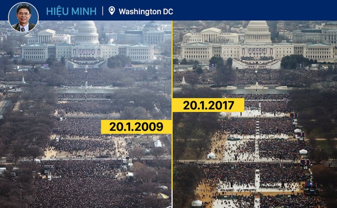 VBF-Không cần phải nói đâu xa cứ nhìn lễ nhận chức của ông Obama những năm trước mới thấy người dân quá đông tới dự lễ. Nhưng năm nay đúng như dự đoán của dư luận, dù lễ nhận chức của ông Trump được quảng cáo rầm rộ nhưng vắng hơn nhiều so với của ông Obama. Không những vậy có rất nhiều người bày tỏ phản đối vị tân tổng thống Trump này 1 cách mạnh liệt.Ở Mỹ đã hơn chục năm, chưa bao giờ tôi thấy đông người trên National Mall (Quảng trường Quốc gia) như lễ nhậm chức của Tổng thống Obama 8 năm trước. Nhưng năm nay thì khác.